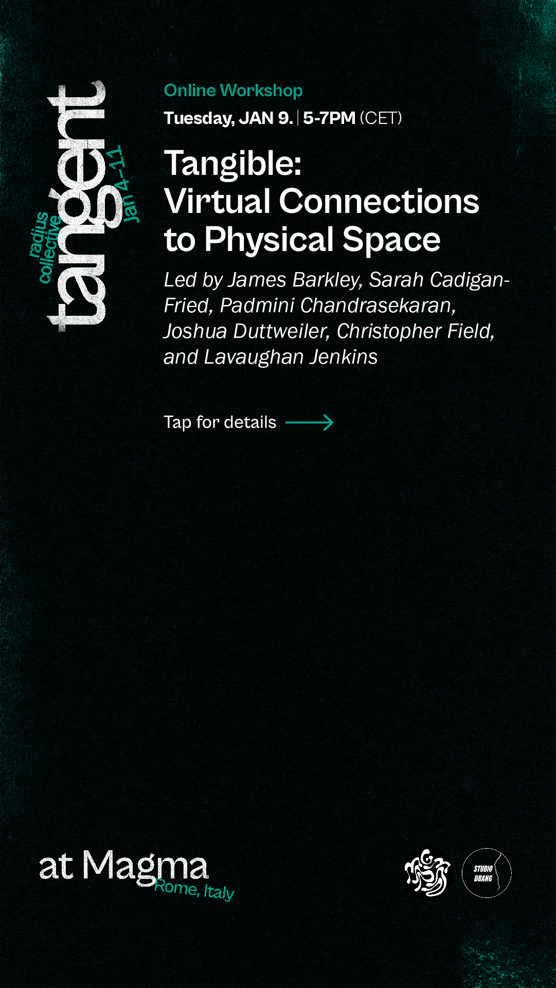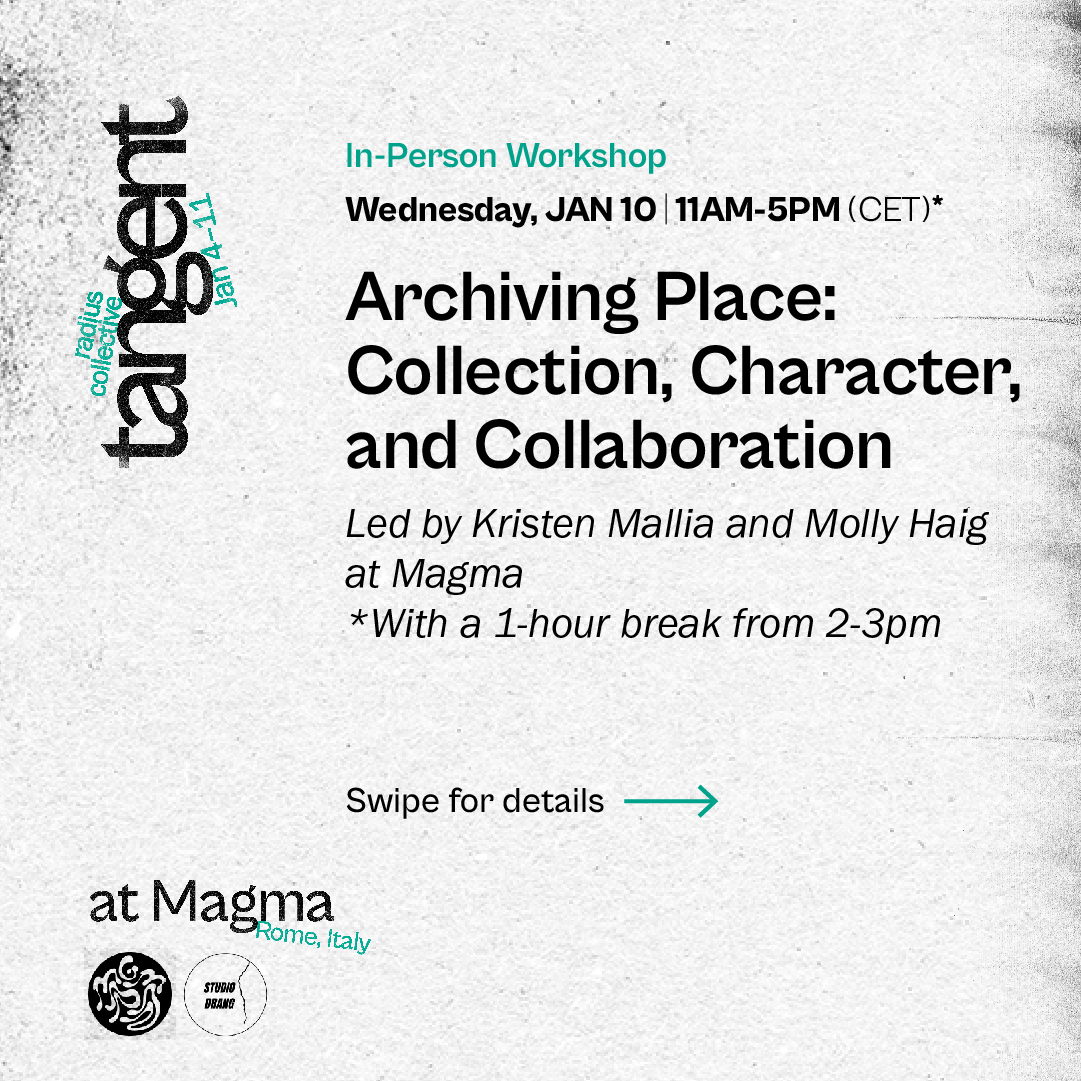 2023Radius Collective’s fifth show was held at ARCI Magma in Rome, Italy from Jan 4-11, 2024. Tangent: a straight line or plane that touches a curve or curved surface at a point, but if extended does not cross it at that point — or — a completely different line of thought or action.